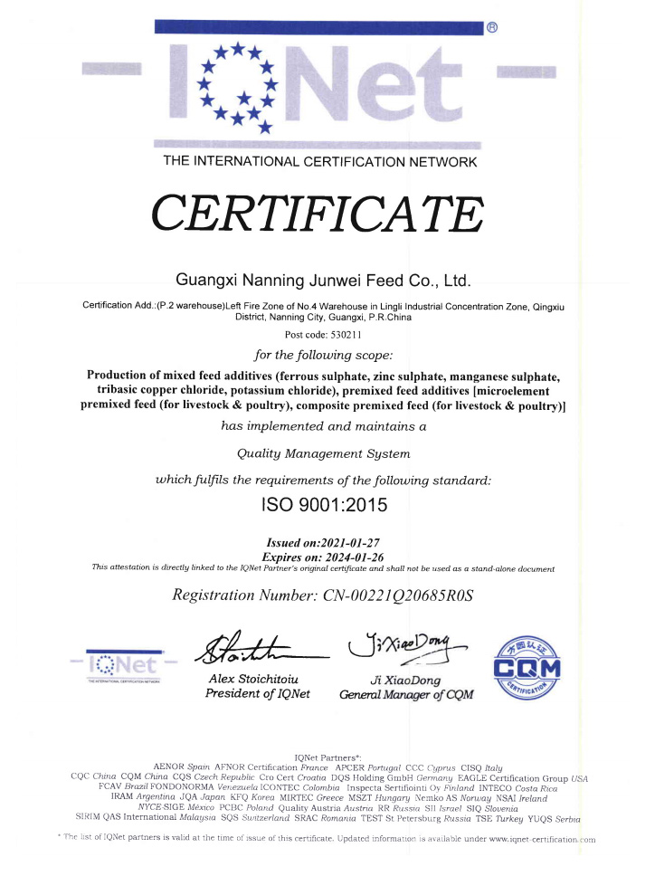 駿威—添加劑預混合飼料生產(chǎn)許可證